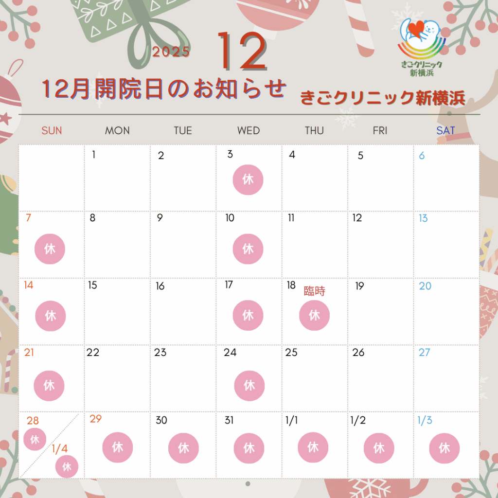 ※年始は 2026年1月5日(月)より通常診療となります。