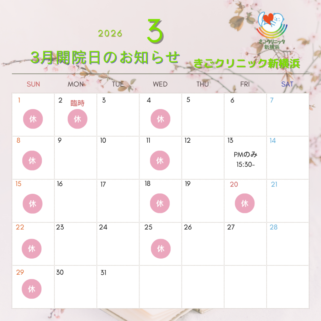 2026年3月の休診日および診療時間の変更は以下の通りです。