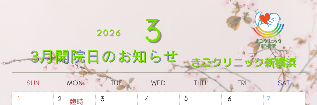 2026年3月の休診日および診療時間の変更は以下の通りです。