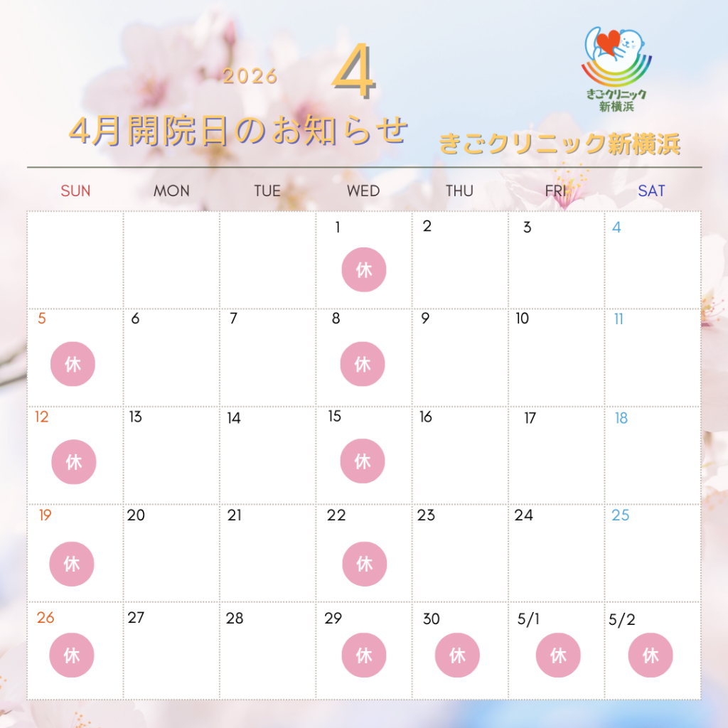 • 4月30日(木)〜5月6日(水)ゴールデンウィーク休診